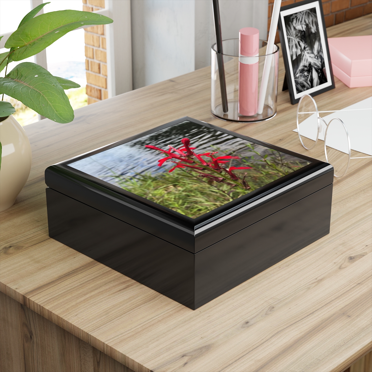 .: 6″ x 6″ (15cm x 15cm) decorated glossy sublimation ceramic tile fitted on top of the lid